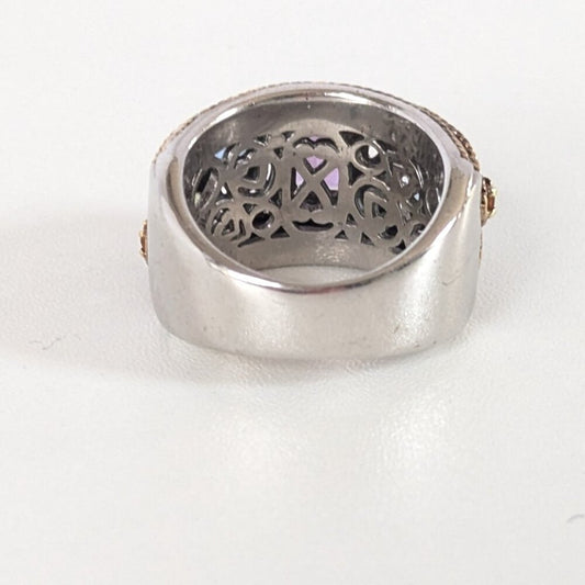 Sima K Amethyst And Multi Gemstone Two Tone Sterling Silver Band Cocktail Ring