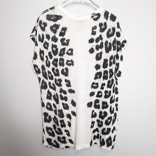 Diesel Black White Leopard Print Short Sleeve Linen Blend T- Shirt Short Sleeve
