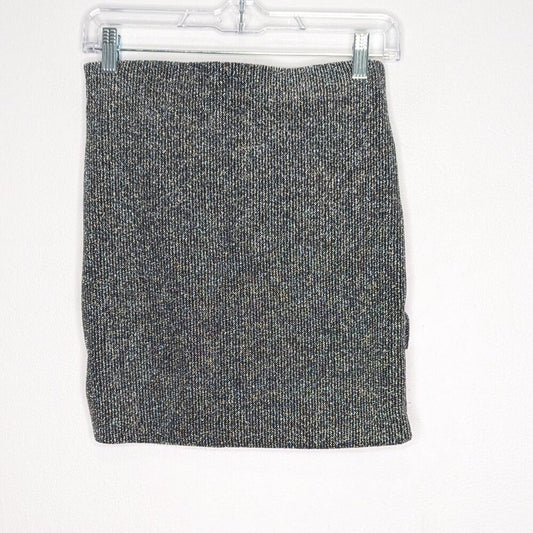 IRO Silver Metallic Stretch Lisko Ruffle Front Mini Skirt Ribbed Bodycon