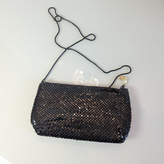 Vintage Unbranded Black Gold Silver Metal Mesh Crossbody Bag Zip Close 80's
