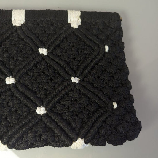 Vintage 1960's Black White Macrame Framed Clutch Bag Crochet