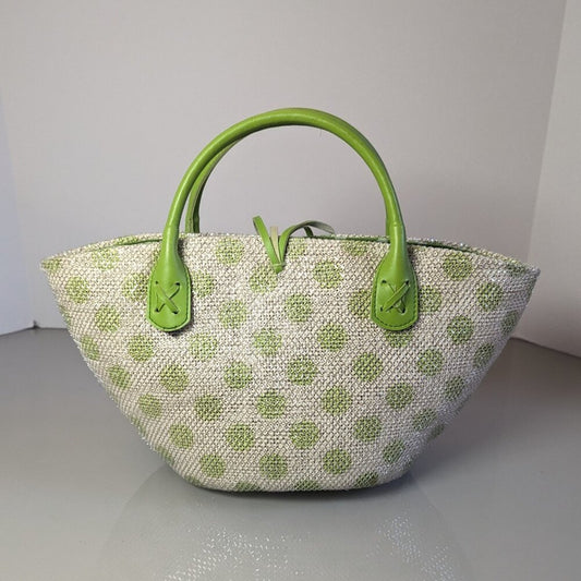 Acorn Green Polka Dot Double Handle Bag Silver Mesh Overlay Button Detail