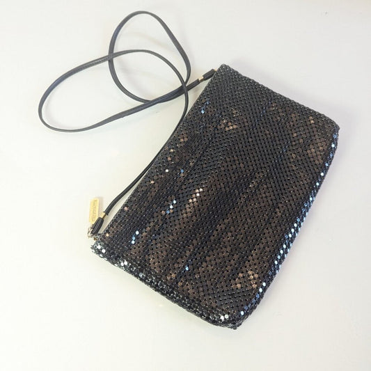 Whiting and Davis Vintage Black Metal Mesh Crossbody Bag Zip Close 80's