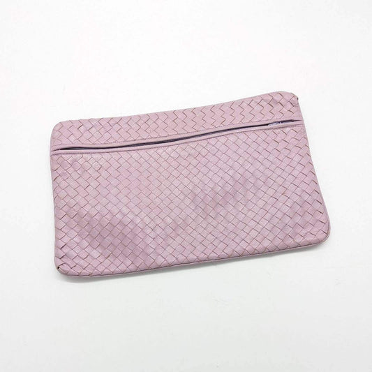 Gatto Vintage Pastel Purple Clutch Leather Basket Weave Wrist Strap Zip Close