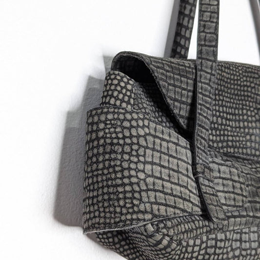 Paravidino Vintage Black Suede Leather Baguette Shoulder Bag Crocodile Pattern