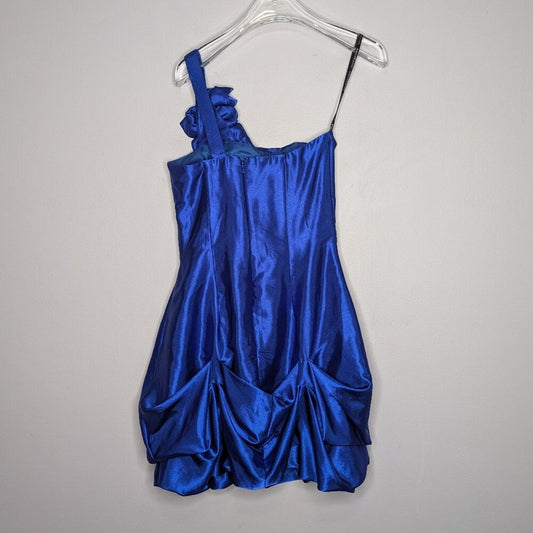 Vintage Jessica McClintock Gunne Sax Y2K Royal Blue Mini Dress One Shoulder