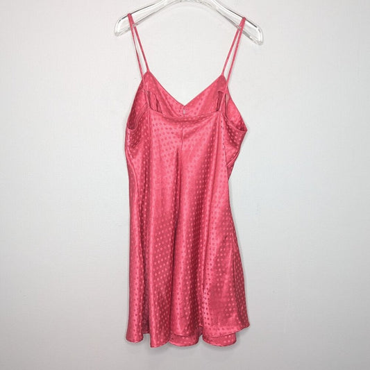 Vintage Bright Pink Monochromatic Polka Dot Pattern Satin Slip Dress Buttons