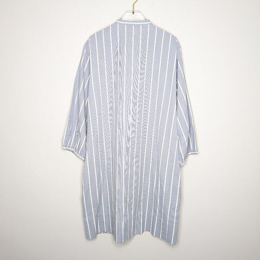Everlane Blue White The Cotton Weave Collarless Shirtdress Striped Pockets 14
