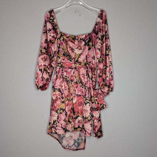 Showpo Pink Chloe Puff Sleeve Drape Mini Dress Boudoir Blooms Floral Print NWT 4