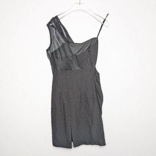 Black Halo Black One Shoulder Mini Dress Side Ruching Sheer Back Slit Size 4
