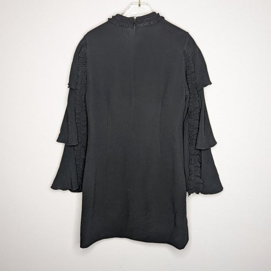 Alexis Black Marianne Tiered Bell-Sleeve Crepe Mini Dress Ruffled Trim Size M