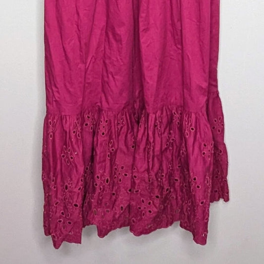 En Saison Flutter-Puff Sleeve Maxi Dress Eyelet Trim Criss Cross Back Size S