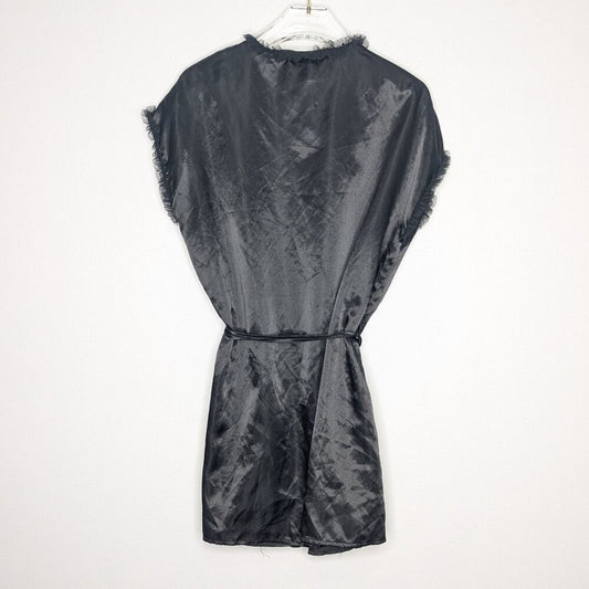 Cinema Etoile Seductive Wear Vintage Black Mini Robe Ruffle Trim Pom Pom Tie