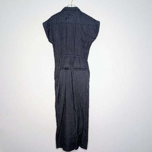 Anthropologie Ettitwa Navy Blue Floral Print Jumpsuit Short Sleeve Button Up 2