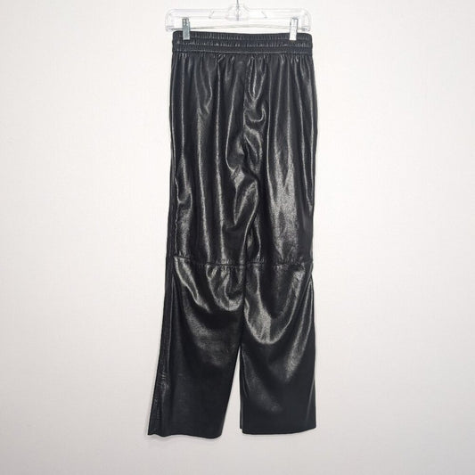Good American Black Wide Leg Faux Leather Pants Drawstring Waist Pockets Size M