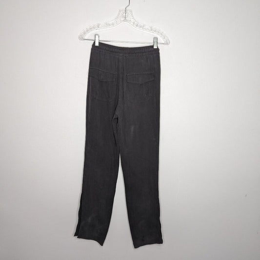 Da-Nang Black Relaxed Fit Silk Pants Sequin Trim Drawstring Waist Split Hem XS