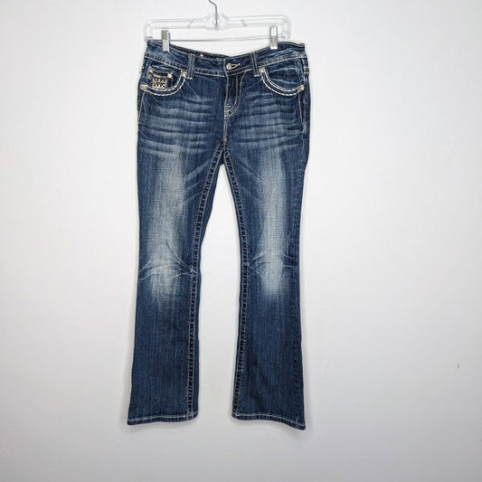 Miss Me Blue Sequin Low Rise Easy Boot Cut Jeans Button Pocket Jeweled 27