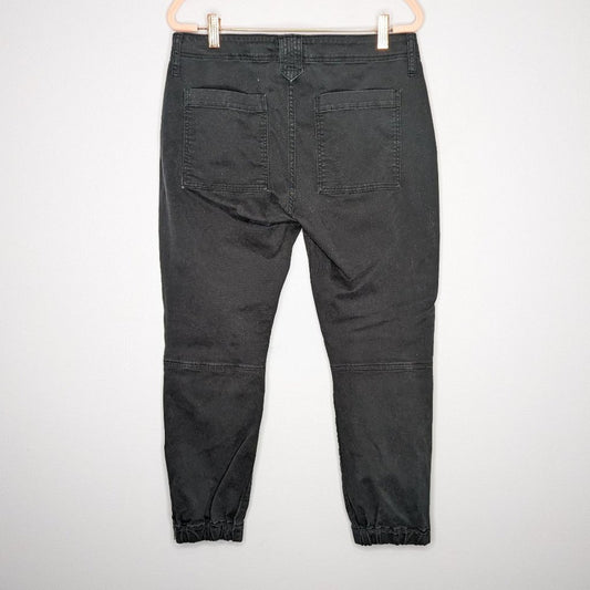 Frame Washed Black Banded Bottom Trapunto Moto Pant Anke Zip Relaxed Fit Size 30