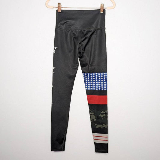 Noli Yoga Black Rebel Leggings Stars Stripes Camo Print 8 Way Stretch Size XS