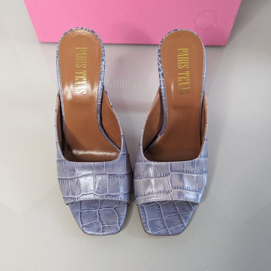 Paris Texas Lavender Moc Croc Square Toe Mule Sandals Open Toe Curved Heel 36