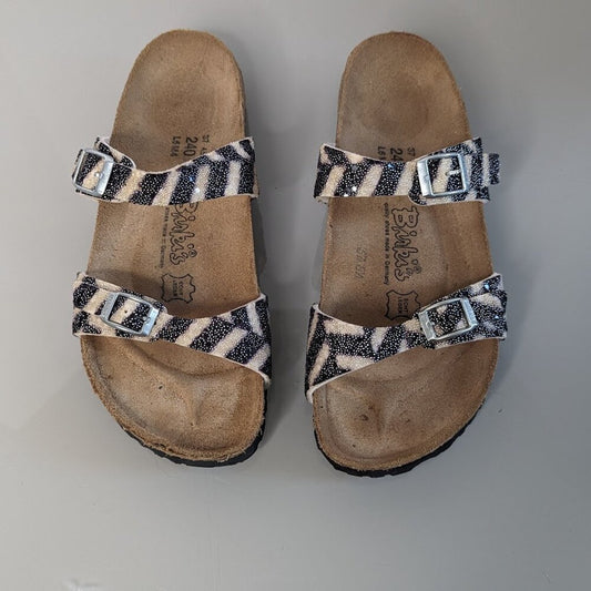 Birkenstock Birkis Black Ivory Tahiti Beaded Double Strap Sandals Slip On Size 6