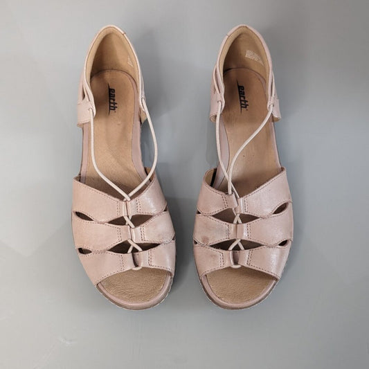 Earth Aloha Blush Pink Leather Open Toe Sandals Flat Strappy Slip On Size 10