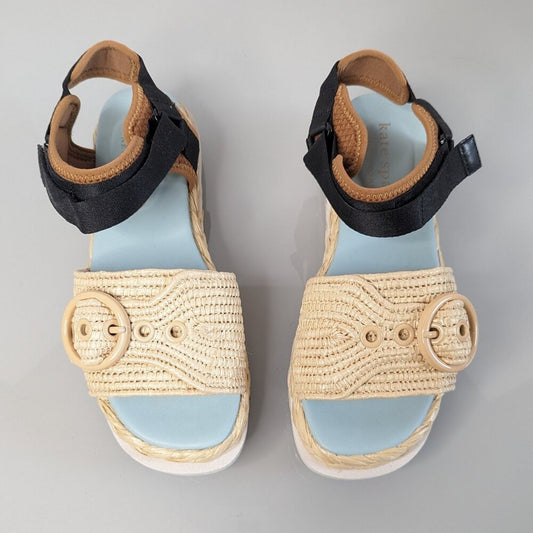 Kate Spade New York Brown Acapulco Sandals Woven Raffia Platform Ankle Strap
