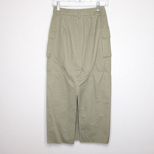 Beige Botany Army Green Cotton Cargo Midi Skirt Back Slit Pockets Size S