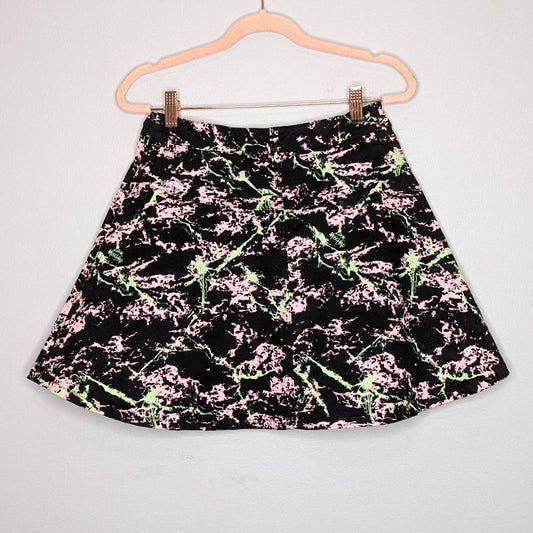 Love Moschino Black And Neon Splatter Print Mini Skirt Front Flap Pockets Size 4