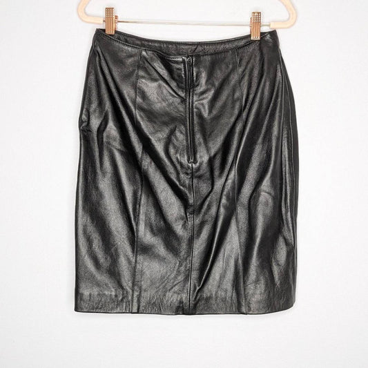 Julian K. Vintage Black Soft Genuine Leather Mini Pencil Skirt Back Zip