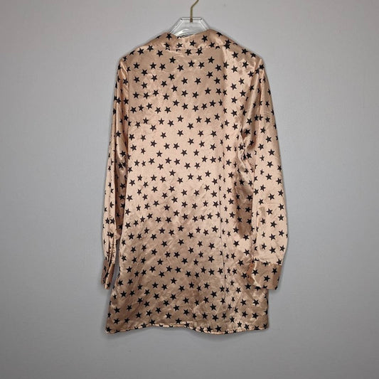 Nasty Gal Cream Star Print Satin Blouse Long Sleeve Button Up Collared Size 4