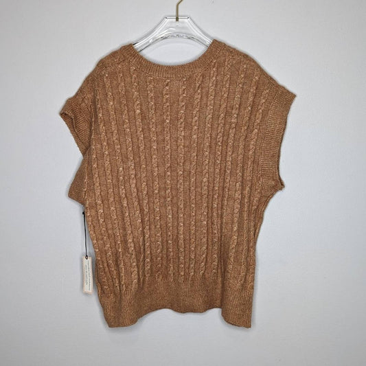 Cupcakes and Cashmere Tan Sleeveless Cable Knit Vest V-Neck Size 1X NWT