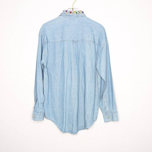 MJ Carroll Vintage Rhinestone Studded Collar Button Down Shirt Long Sleeve S
