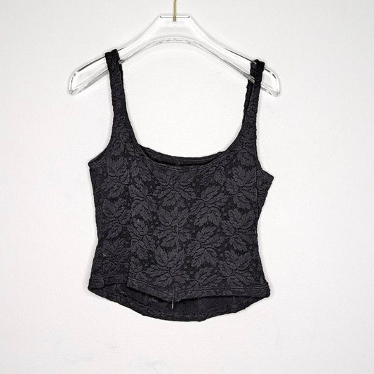 Cosabella Vintage Black Lace Cropped Tank Top Stretch Back Zip Size M