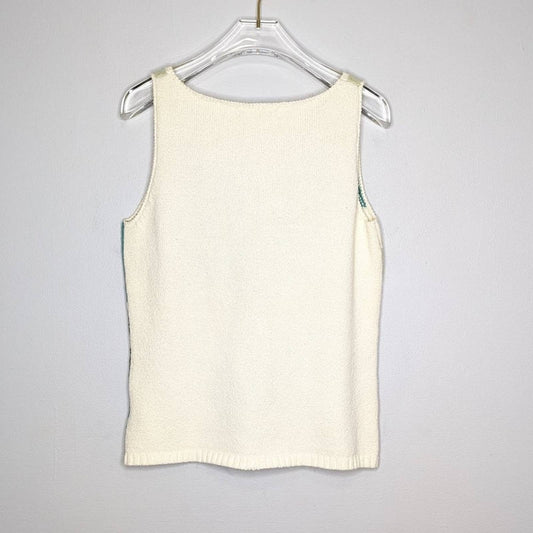 Nine West Vintage 90s Mod Blue Floral Pattern Knit Top Sequins Sleeveless V-Neck