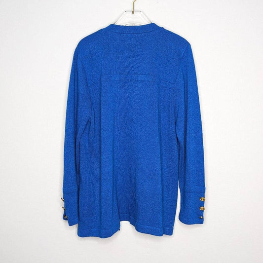 San Remo Vintage Royal Blue Open Front Cardigan Long Sleeve Gold Buttons Chain
