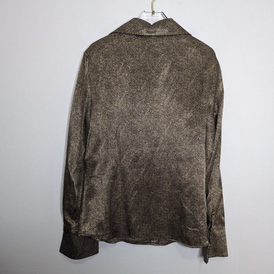 Vintage Black Gold Tiny Polka Dot Pattern Satin Shirt Button Up Long Sleeve 12