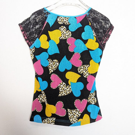 Vintage Y2K Heart Print Short Sleeve V-Neck Shirt Sequins Leopard Print Pink