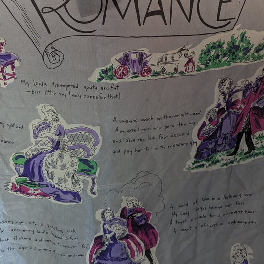 Vintage Gray Purple Silk Large Square Scarf Rococo Romance Imagery Rolled Edge