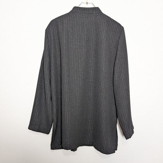 Vintage 90's Black Mandarin Collar Metallic Pin Stripe Top Long Sleeve Button Up