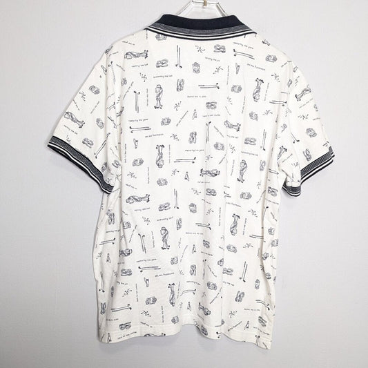 Vintage Liz Claiborne White Golf Print Short Sleeve Polo Shirt Collared Preppy