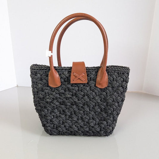Vintage Black Woven Crossbody Bag Upcycled Jewelry Charms Double Handle Snap