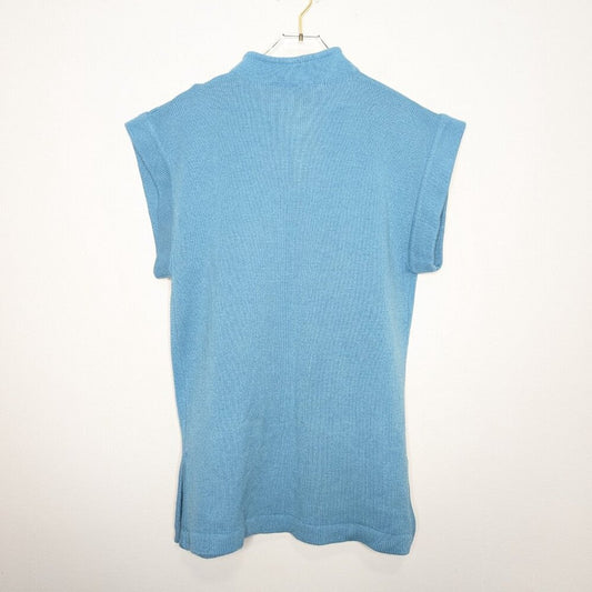 Vintage Blue Deadstock Sleeveless Cardigan Tie Neck Standing Collar Tassels M