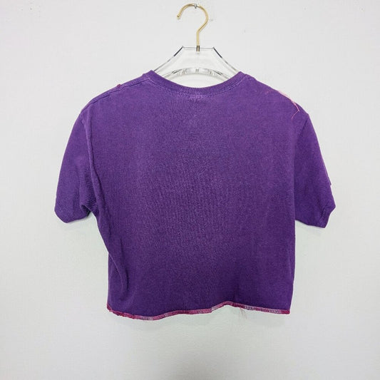 Vintage Upcycled Purple Short Sleeve Cropped Houston Texas T-Shirt Neon Pink