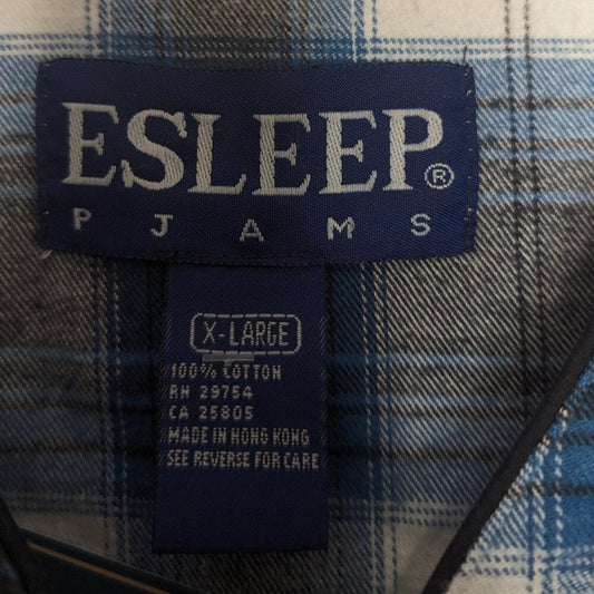 Vintage Blue Plaid Esleep 90's Baseball Jersey Flannel Sleep Shirt Long Sleeve