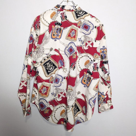 Vintage 90's Long Sleeve Royal Crest Shield Pattern Button Up Shirt White Pink