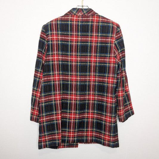 Worthington Vintage 70's Red Plaid Long Sleeve Blazer Pockets Single Button 8