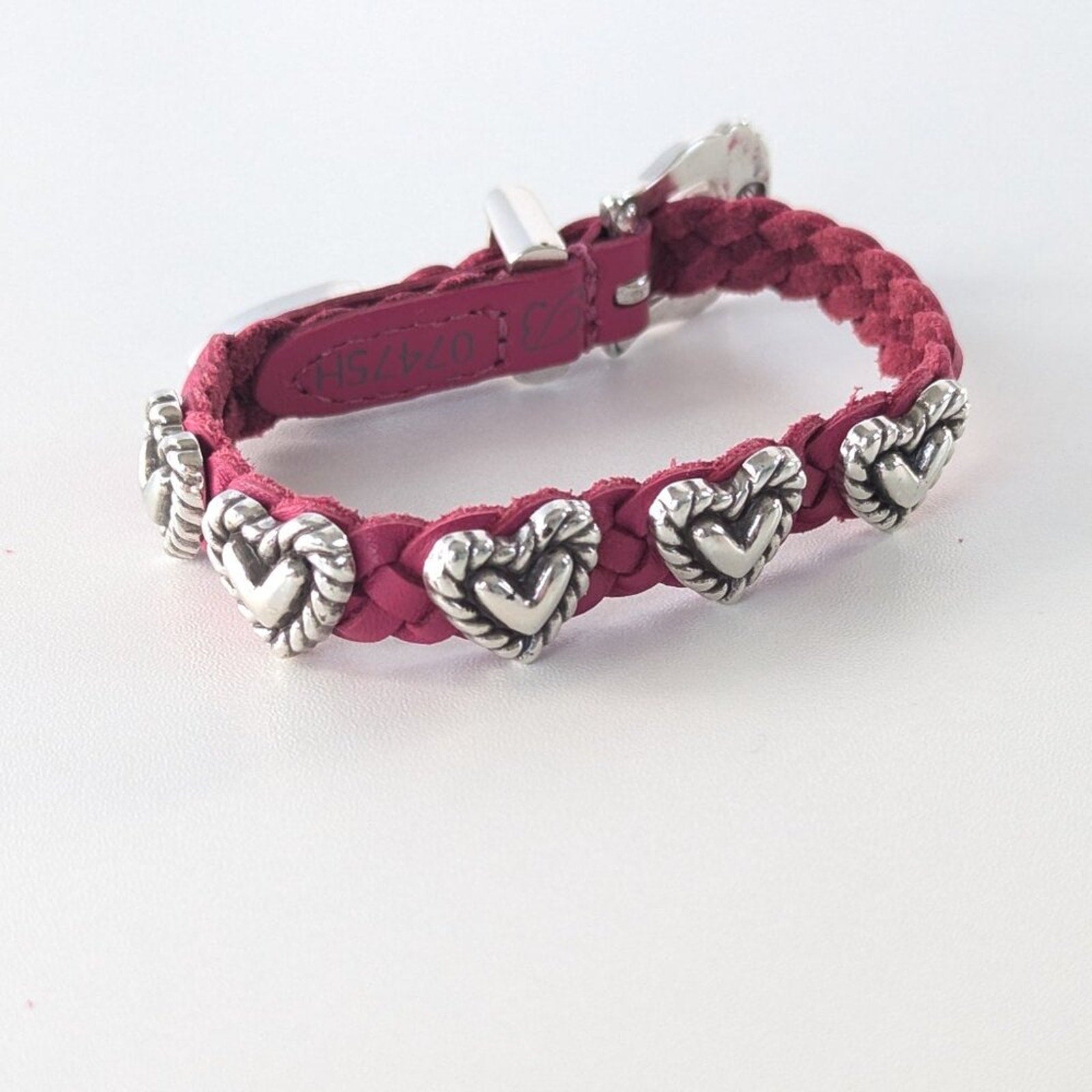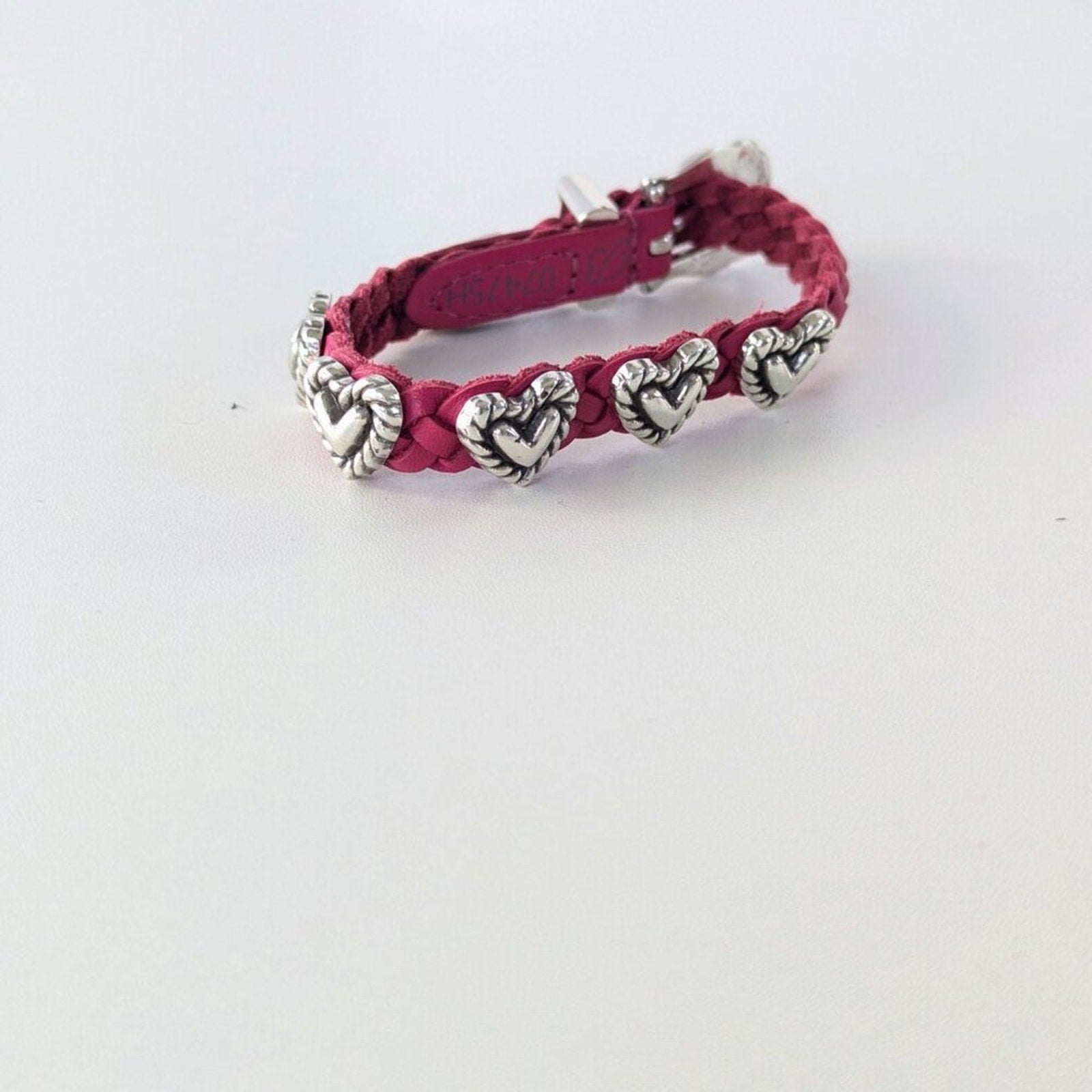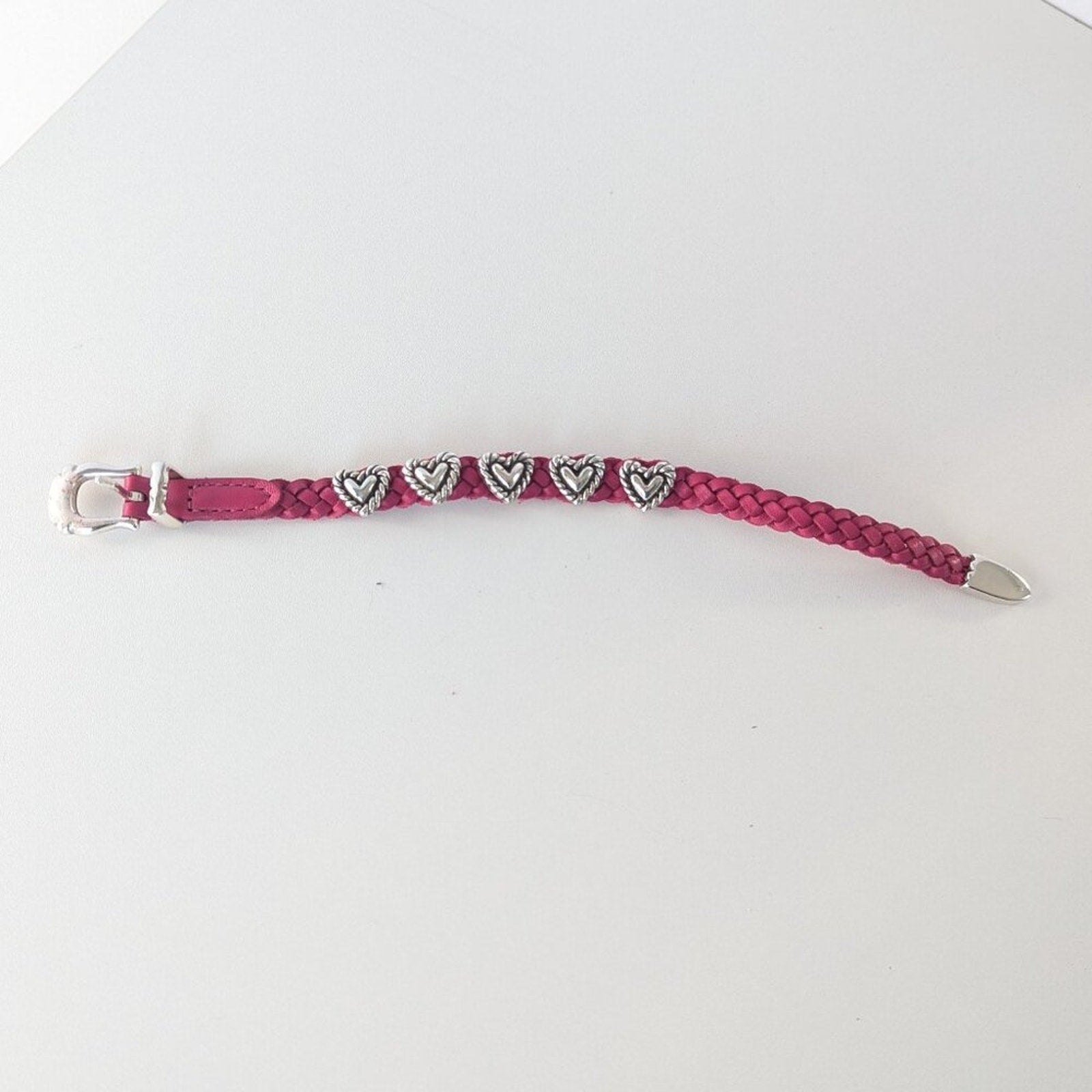 Brighton Pink Roped Heart Braid Bandit Leather Bracelet Adjustable Buckle
