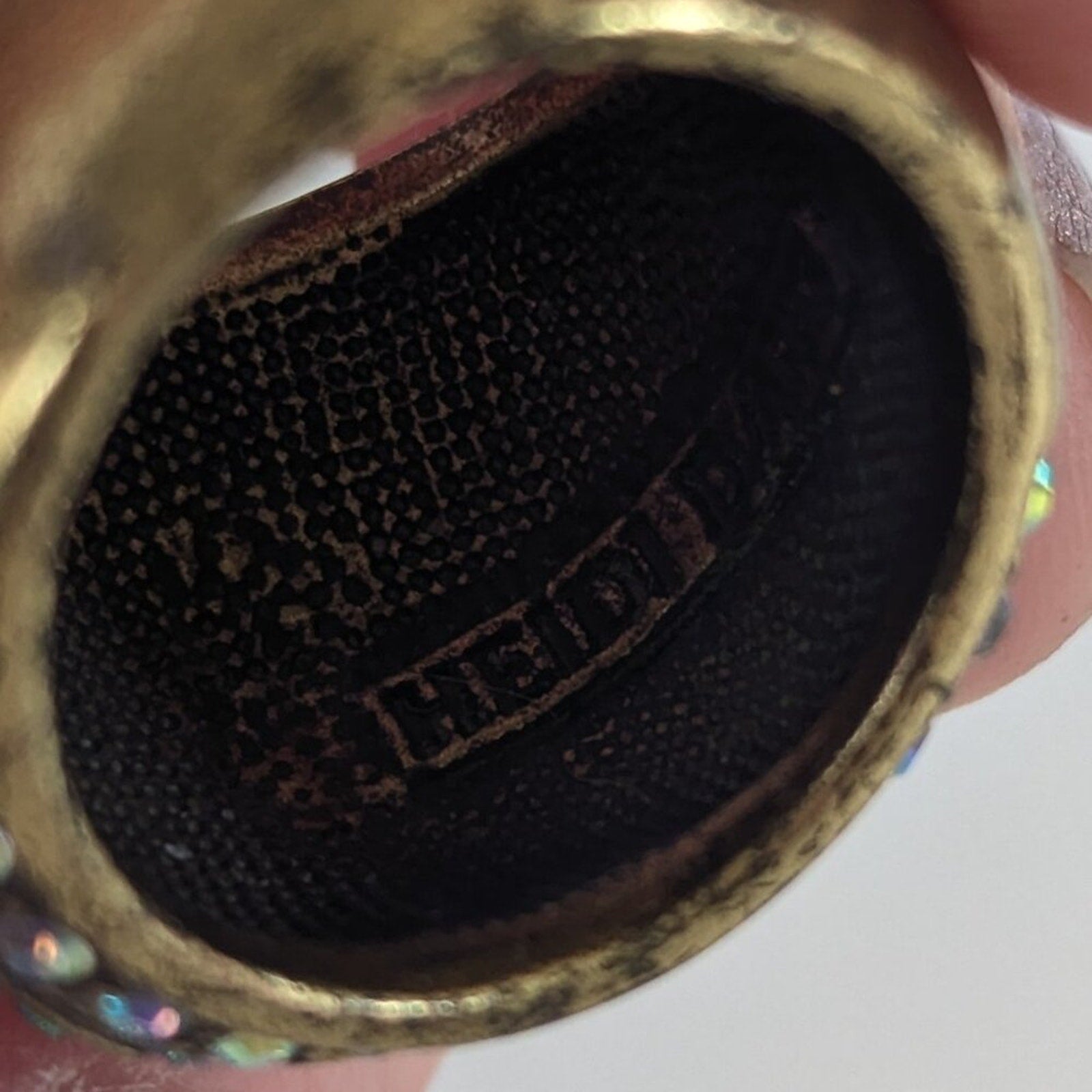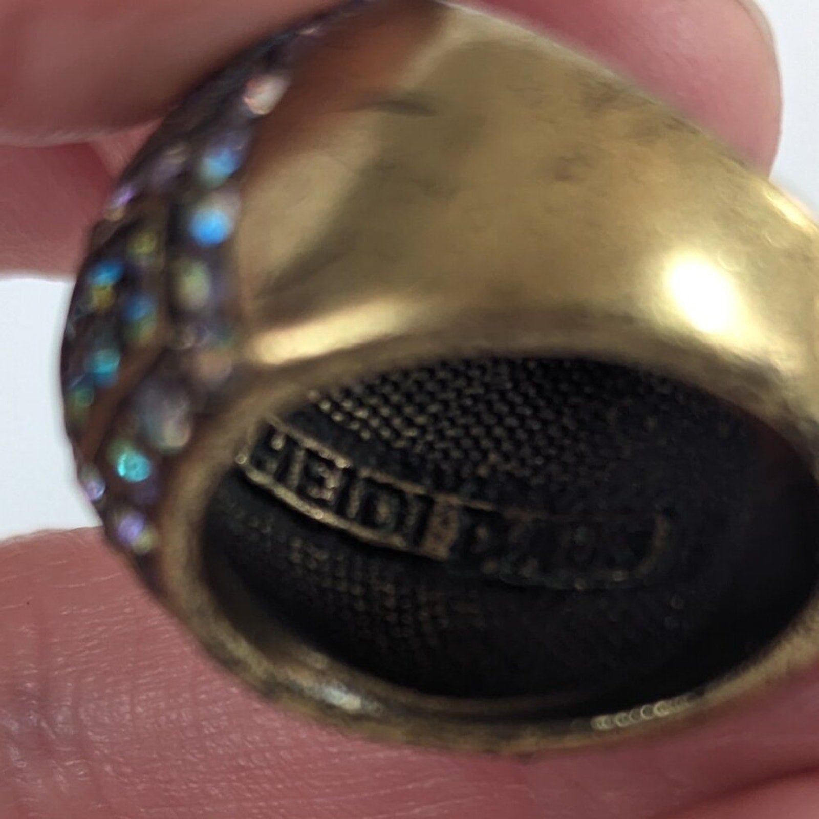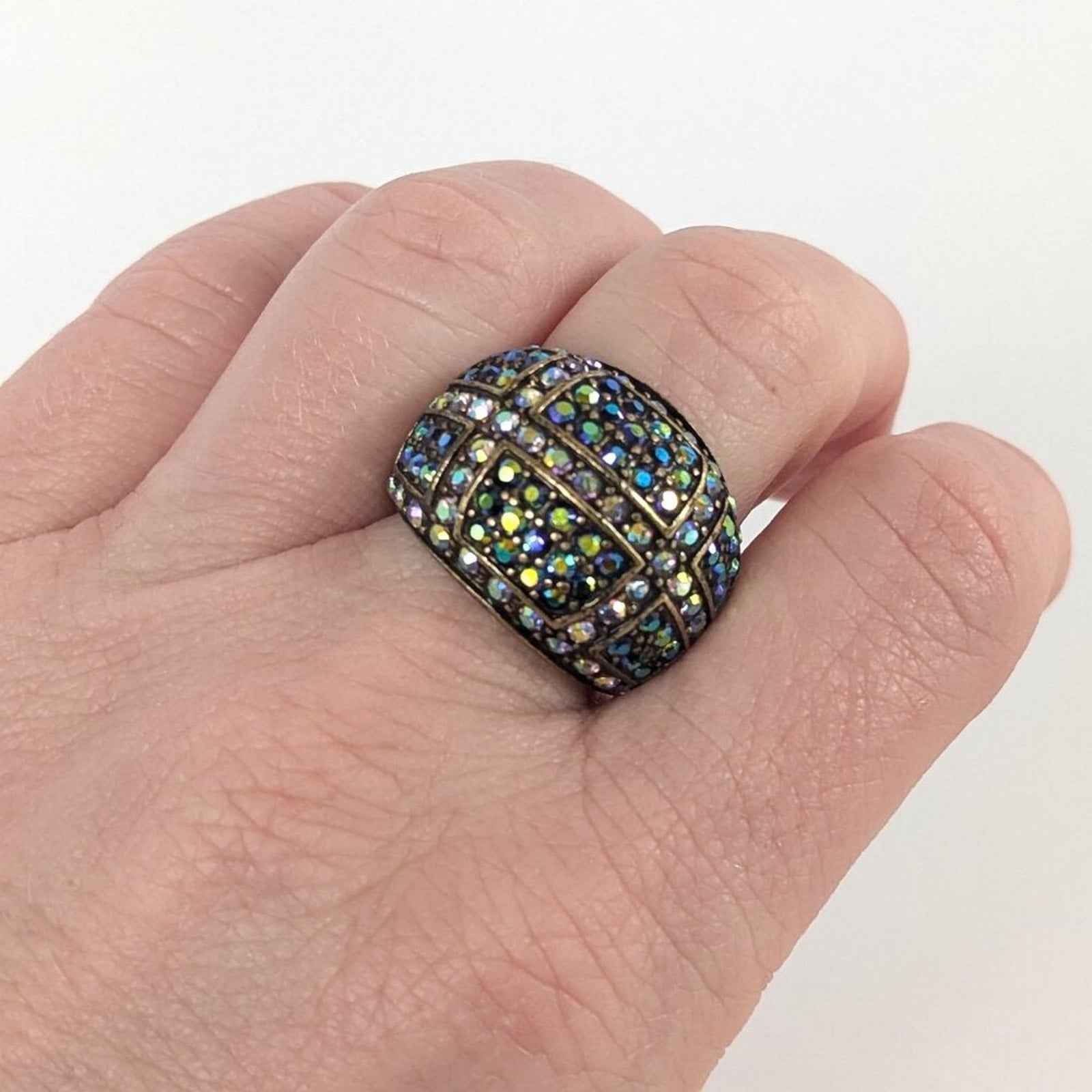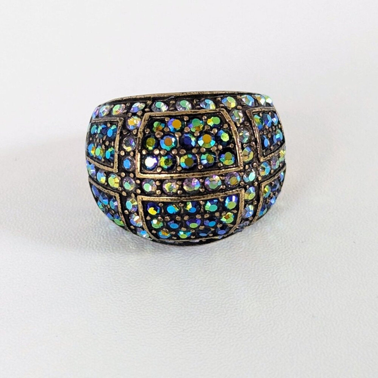 Heidi Daus Swarovski Aurora Borealis Crystal Dome Ring Brass Gold Tone Size 7