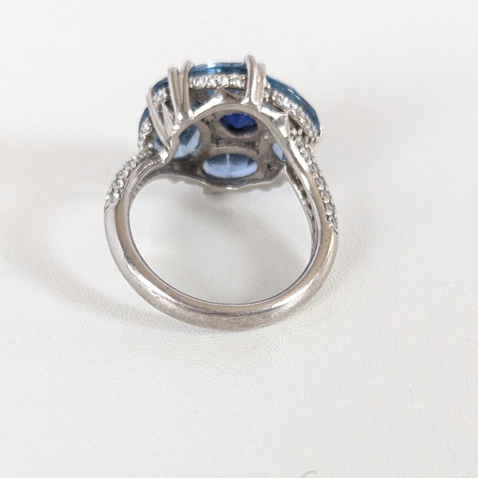 Don't miss out on this blue topaz and cubic zirconia floral shaped ring by Jean Dousset.
